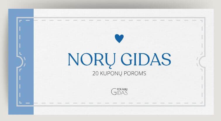- Meilės kuponų knygelė „Norų gidas”– kad romantika niekada neišblėstų, o kiekviena diena taptų proga nustebinti ir pradžiuginti vienas kitą.
